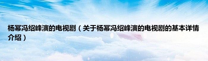本文关于杨幂冯绍峰演的电视剧的基本详情介绍就讲解完毕,希望对大家有所帮助。