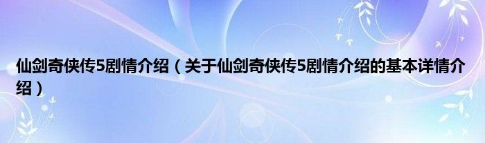 本文关于仙剑奇侠传5剧情介绍的基本详情介绍就讲解完毕,希望对大家有所帮助。