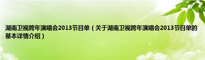 本文关于湖南卫视跨年演唱会2013节目单的基本详情介绍就讲解完毕,希望对大家有所帮助。
