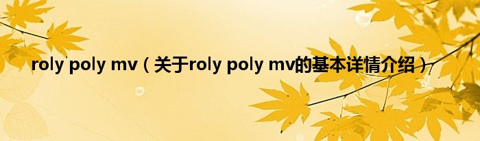 本文关于roly poly mv的基本详情介绍就讲解完毕,希望对大家有所帮助。