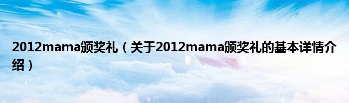 本文关于2012mama颁奖礼的基本详情介绍就讲解完毕,希望对大家有所帮助。