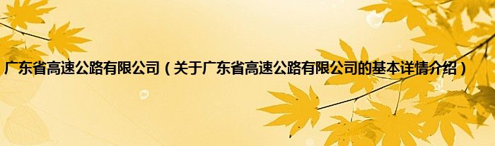 本文关于广东省高速公路有限公司的基本详情介绍就讲解完毕,希望对大家有所帮助。