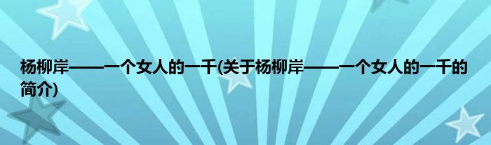 本文关于杨柳岸——一个女人的一千的简介就讲解完毕,希望对大家有所帮助。