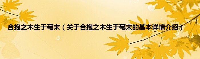 本文关于合抱之木生于毫末的基本详情介绍就讲解完毕,希望对大家有所帮助。