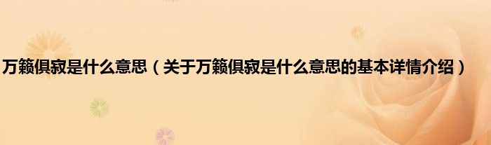 本文关于万籁俱寂是什么意思的基本详情介绍就讲解完毕,希望对大家有所帮助。