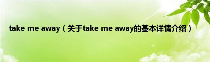 本文关于take me away的基本详情介绍就讲解完毕,希望对大家有所帮助。
