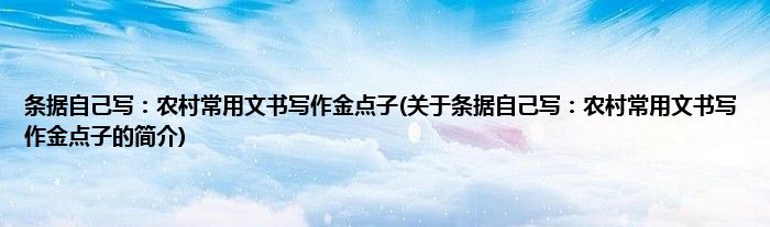 1、 《条据自己写:农村常用文书写作金点子》坚持立足实际,以服务农民为宗旨,简明扼要地介绍了农村常用应用文的使用和写作规范。