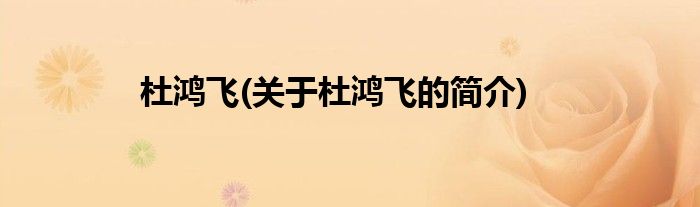 大家好,杜鸿飞,关于杜鸿飞的简介很多人还不知道,现在让我们一起来看看吧!