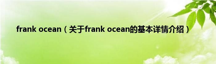 本文关于frank ocean的基本详情介绍就讲解完毕,希望对大家有所帮助。