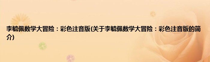 本文关于李毓佩数学大冒险:彩色注音版的简介就讲解完毕,希望对大家有所帮助。