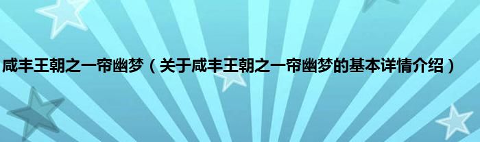 本文关于咸丰王朝之一帘幽梦的基本详情介绍就讲解完毕,希望对大家有所帮助。