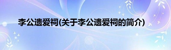 大家好,李公遗爱祠,关于李公遗爱祠的简介很多人还不知道,现在让我们一起来看看吧!