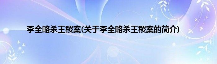 本文关于李全略杀王稷案的简介就讲解完毕,希望对大家有所帮助。