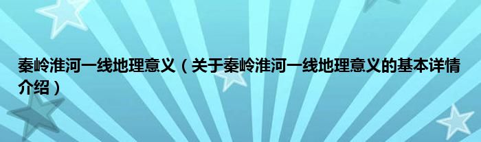 本文关于秦岭淮河一线地理意义的基本详情介绍就讲解完毕,希望对大家有所帮助。