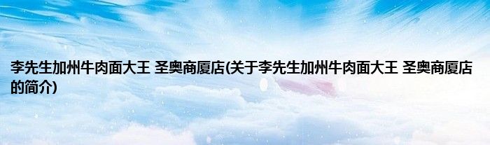 本文关于李先生加州牛肉面大王 圣奥商厦店的简介就讲解完毕,希望对大家有所帮助。