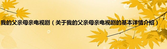 本文关于我的父亲母亲电视剧的基本详情介绍就讲解完毕,希望对大家有所帮助。