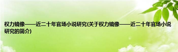 本文关于权力镜像——近二十年官场小说研究的简介就讲解完毕,希望对大家有所帮助。