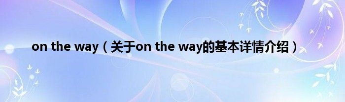 本文关于on the way的基本详情介绍就讲解完毕,希望对大家有所帮助。