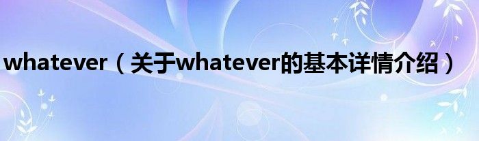 本文关于whatever的基本详情介绍就讲解完毕,希望对大家有所帮助。