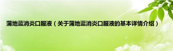 本文关于蒲地蓝消炎口服液的基本详情介绍就讲解完毕,希望对大家有所帮助。