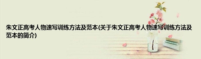 大家好,朱文正高考人物速写训练方法及范本,关于朱文正高考人物速写训练方法及范本的简介很多人还不知道,现在让我们一起来看看吧!