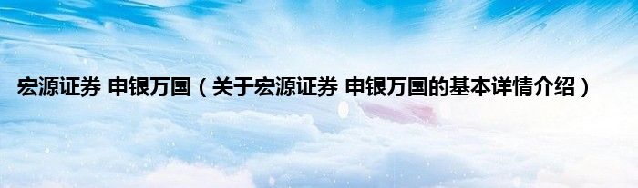 本文关于宏源证券 申银万国的基本详情介绍就讲解完毕,希望对大家有所帮助。