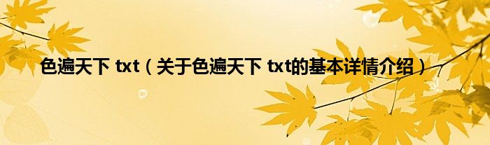 本文关于色遍天下 txt的基本详情介绍就讲解完毕,希望对大家有所帮助。