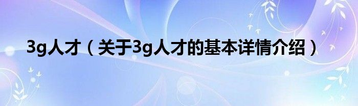 本文关于3g人才的基本详情介绍就讲解完毕,希望对大家有所帮助。