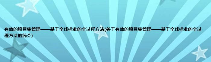本文关于有效的项目集管理——基于全球标准的全过程方法的简介就讲解完毕,希望对大家有所帮助。