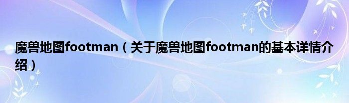 本文关于魔兽地图footman的基本详情介绍就讲解完毕,希望对大家有所帮助。