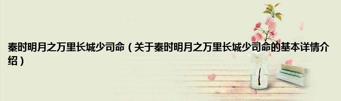 秦时明月之万里长城少司命(关于秦时明月之万里长城少司命的基本详情介绍)