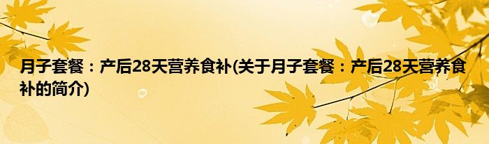 本文关于月子套餐:产后28天营养食补的简介就讲解完毕,希望对大家有所帮助。