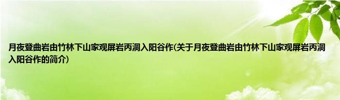 本文关于月夜登曲岩由竹林下山家观屏岩丙洞入阳谷作的简介就讲解完毕,希望对大家有所帮助。