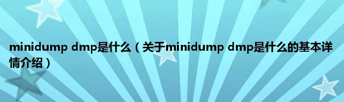 本文关于minidump dmp是什么的基本详情介绍就讲解完毕,希望对大家有所帮助。