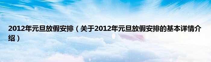 本文关于2012年元旦放假安排的基本详情介绍就讲解完毕,希望对大家有所帮助。