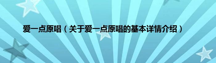 本文关于爱一点原唱的基本详情介绍就讲解完毕,希望对大家有所帮助。