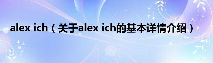 本文关于alex ich的基本详情介绍就讲解完毕,希望对大家有所帮助。