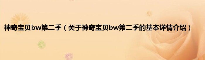 本文关于神奇宝贝bw第二季的基本详情介绍就讲解完毕,希望对大家有所帮助。