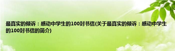本文关于最真实的倾诉:感动中学生的100封书信的简介就讲解完毕,希望对大家有所帮助。