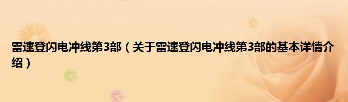 本文关于雷速登闪电冲线第3部的基本详情介绍就讲解完毕,希望对大家有所帮助。