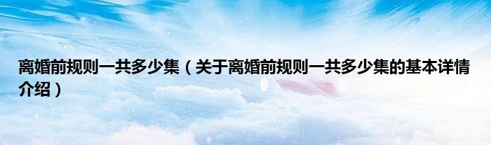 离婚前规则一共多少集(关于离婚前规则一共多少集的基本详情介绍)