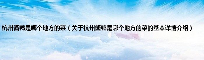 本文关于杭州酱鸭是哪个地方的菜的基本详情介绍就讲解完毕,希望对大家有所帮助。