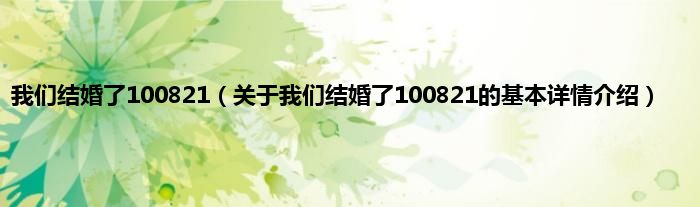 本文关于我们结婚了100821的基本详情介绍就讲解完毕,希望对大家有所帮助。