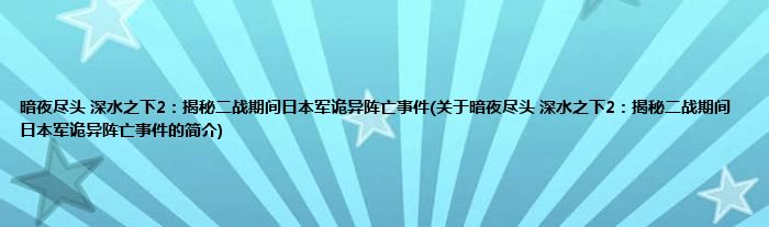 本文关于暗夜尽头,深水之下2:揭秘二战期间日本军诡异阵亡事件的简介就讲解完毕,希望对大家有所帮助。