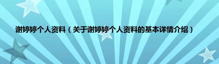 本文关于谢婷婷个人资料的基本详情介绍就讲解完毕,希望对大家有所帮助。