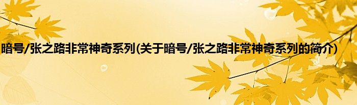 本文关于暗号/张之路非常神奇系列的简介就讲解完毕,希望对大家有所帮助。