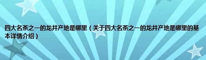 本文关于四大名茶之一的龙井产地是哪里的基本详情介绍就讲解完毕,希望对大家有所帮助。