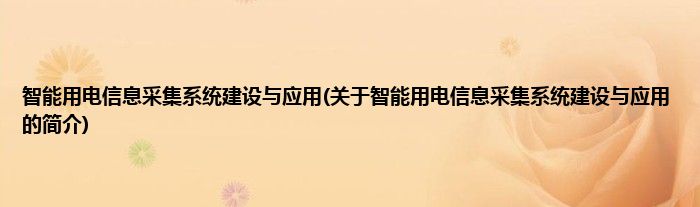 大家好,智能用电信息采集系统建设与应用,关于智能用电信息采集系统建设与应用的简介很多人还不知道,现在让我们一起来看看吧!