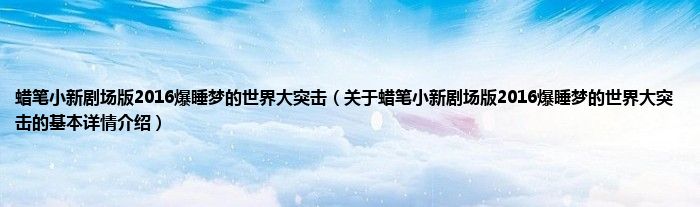 本文关于蜡笔小新剧场版2016爆睡梦的世界大突击的基本详情介绍就讲解完毕,希望对大家有所帮助。