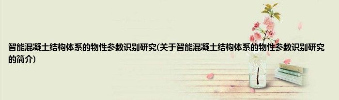 智能混凝土结构体系的物性参数识别研究(关于智能混凝土结构体系的物性参数识别研究的简介)
